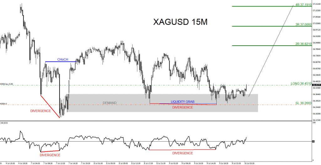 XAGUSD 15 Minute Chart July 9 2025 (Trade entry)