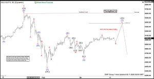 Within this advance, wave (W) ended at $5091.4. A pullback in wave (X) followed, reaching $4654.35. The current move higher is unfolding as wave (Y) in a zigzag formation. From the wave (X) low, wave A advanced to $5086.53. A corrective wave B is expected before the market resumes higher in wave C, with potential to retest the $5610.82 peak.
