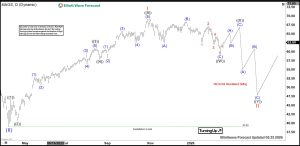 The daily Elliott Wave chart of the Magnificent Seven ETF (MAGS) shows that the rally from the April 2025 low ended in wave I at $69.14. The pullback in wave II is unfolding as a double‑three corrective structure. From wave I, wave ((W)) completed at $60.13. The rally in wave ((X)) is now in progress, correcting the cycle from the October 29, 2025 high in 3‑, 7‑, or 11 swings before turning lower again. Near term, as long as the pivot at the $39 low remains intact, the pullback is expected to find support in a 7‑swing sequence, setting the stage for further upside.