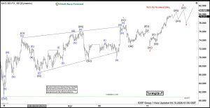 Daily Elliott Wave Chart of GDXJ shows dips to 25.79 ended wave II. The ETF then turned higher in wave III with internal subdivision as a 5 waves. Up from wave II, wave (1) ended at 41.16, and pullback in wave (2) ended at 30.46. The ETF resumed higher in wave (3) towards 49.13 and pullback in wave (4) ended at 40.26. Final leg wave (5) ended at 55.58 which completed wave ((1)) in higher degree. Pullback in wave ((2)) ended at 41.85 but the ETF needs to break above wave ((1)) to confirm the next leg higher has tarted. Near term, while above 25.75, expect the ETF to extend higher.