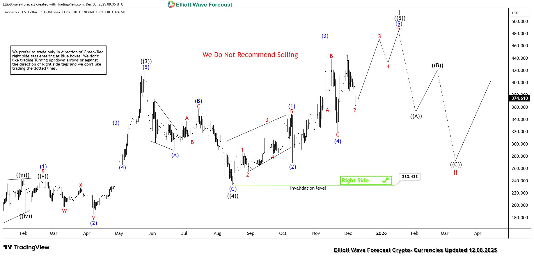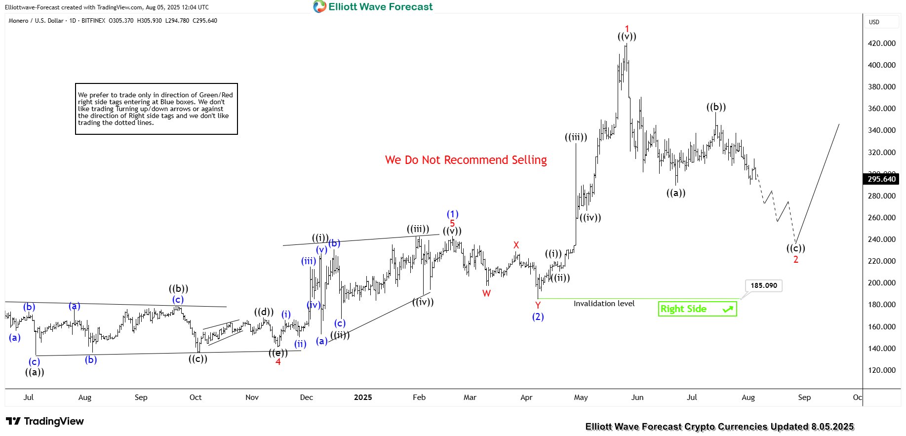 Monero XMRUSD Daily Elliott Wave Chart 12.08.2025